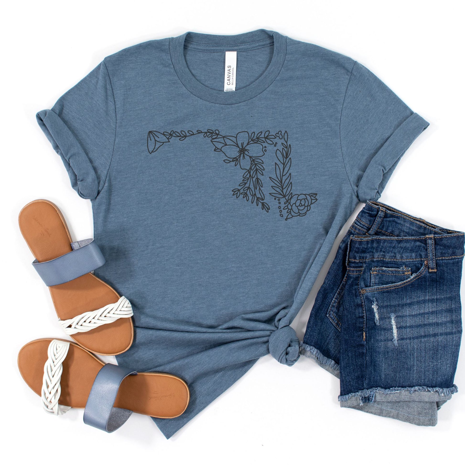 Introducing out captivating floral state collection! These tees are specially designed for those that want to flaunt their deep connection to their home state or beloved travel destinations.